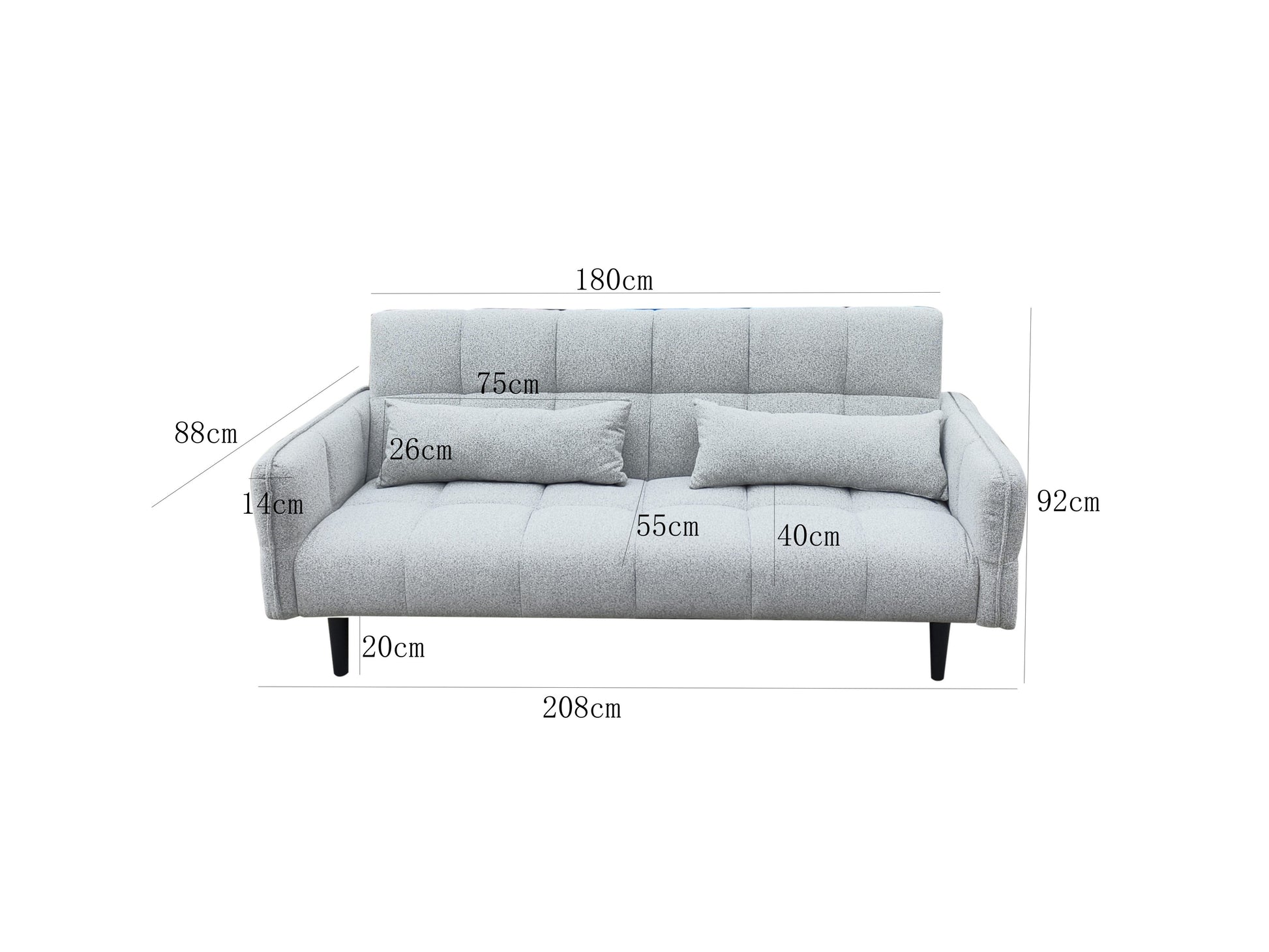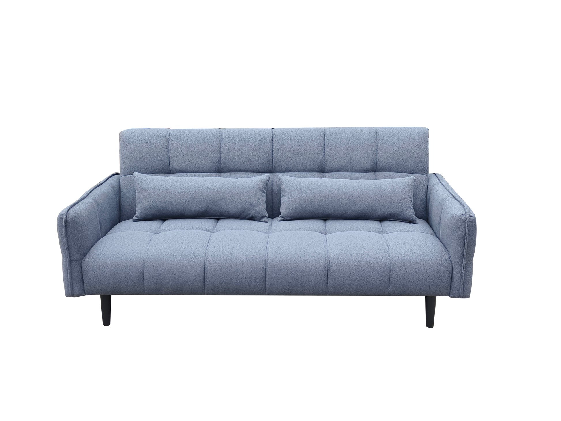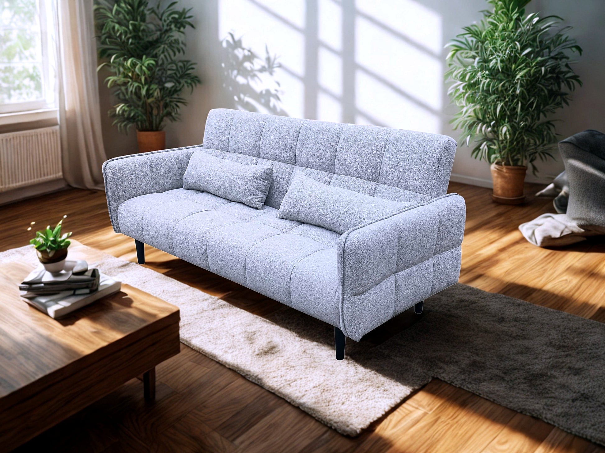The Bello Sofa Bed blends minimal design with everyday practicality, making it the perfect addition to any modern home. With its slim profile, softly rounded arms, and deep square tufted detailing, it offers a clean, contemporary look that works in both living rooms and guest spaces. The backrest folds down smoothly to transform the sofa into a flat, cushioned sleeping surface — ideal for overnight guests or compact city living. Upholstered in a soft, durable fabric and finished with subtle bolster-style cushions at each end, the Bello delivers both style and functionality without taking up excess space.