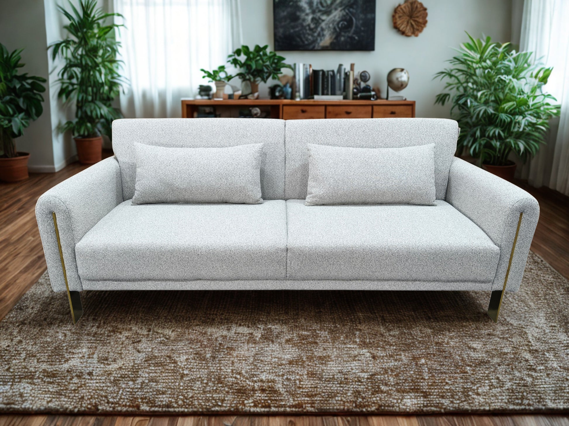 The Como Sofa Bed is a sleek and modern solution for homes that value both style and practicality. Upholstered in a high-quality, durable fabric, it features a sturdy hardwood frame and deep foam cushioning for everyday comfort. Its easy pull-out mechanism transforms the sofa into a spacious bed in seconds, offering reliable support for overnight guests. Finished with slim armrests, soft back cushions and elegant metal legs, The Loft brings understated sophistication to any living space while doubling as a comfortable and dependable guest bed.