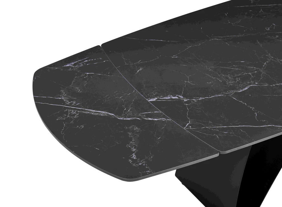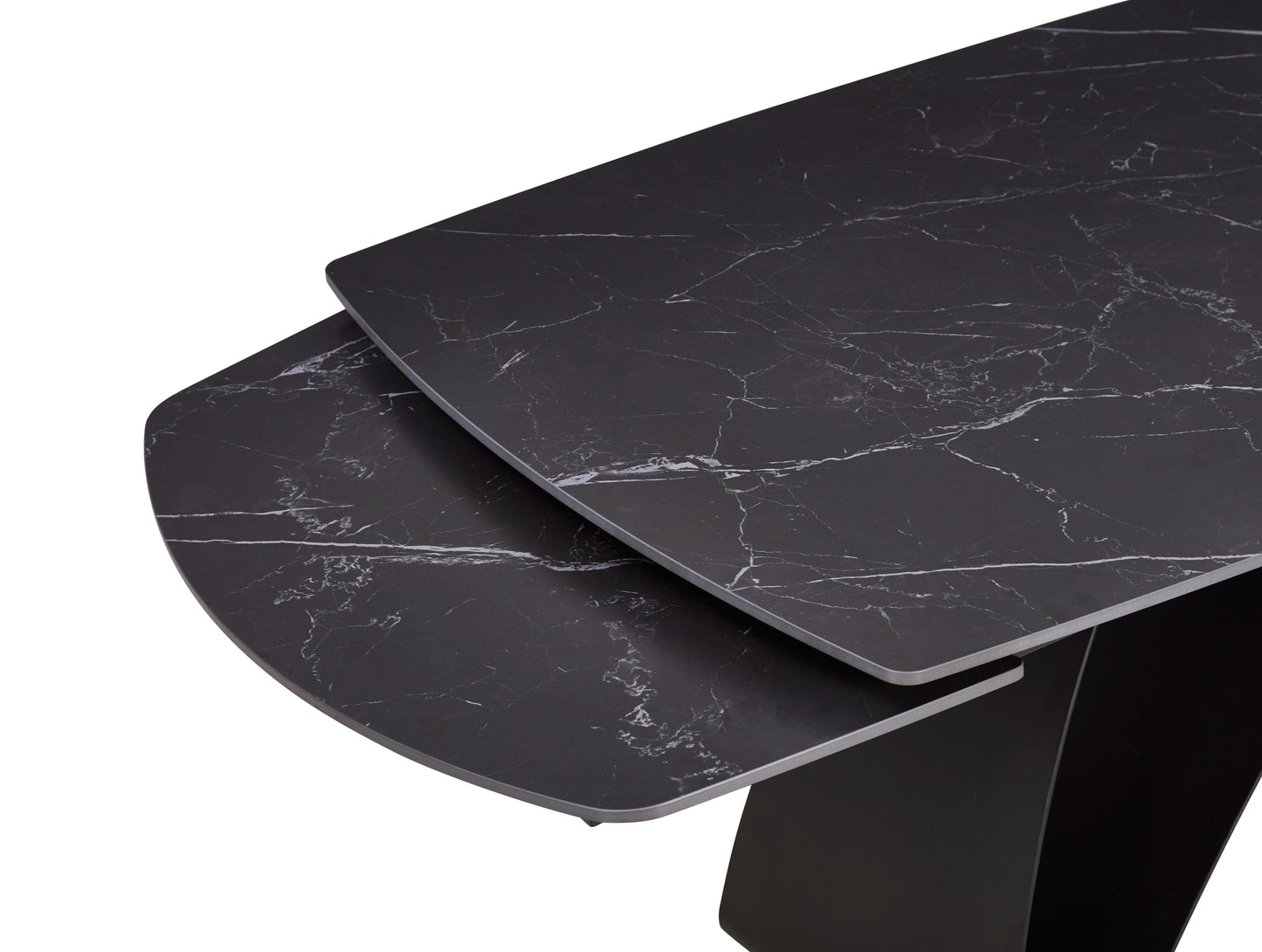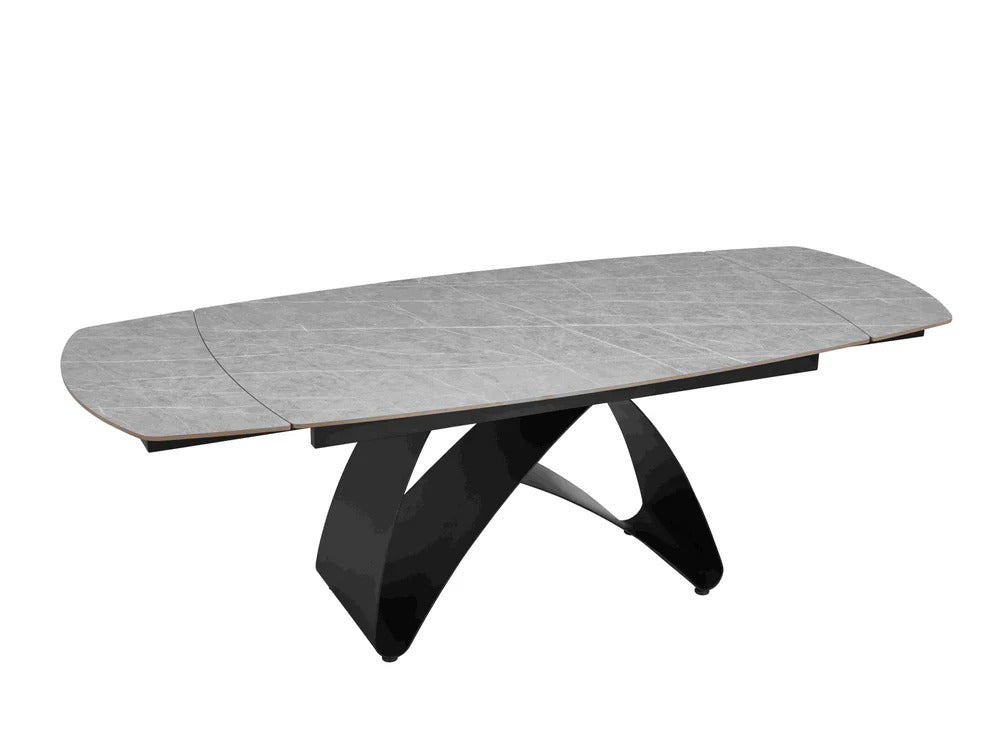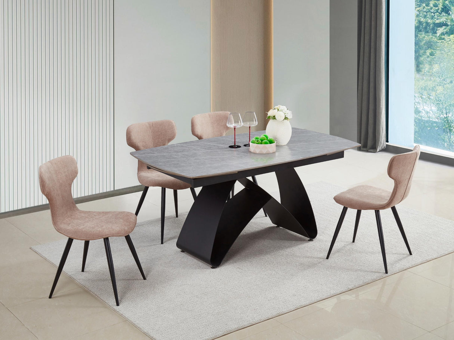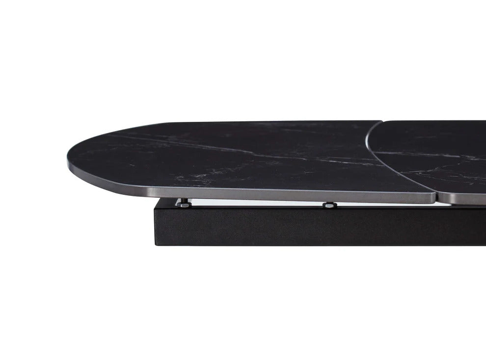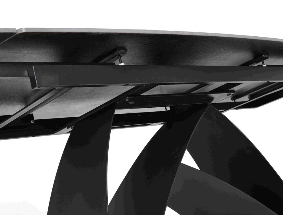The Maelis features an 11mm thick dark grey ceramic tabletop, underpinned by a structural mesh layer for added durability and stability. The smooth ceramic surface delivers a bold, contemporary look — a true statement piece that enhances the elegance of any dining space.